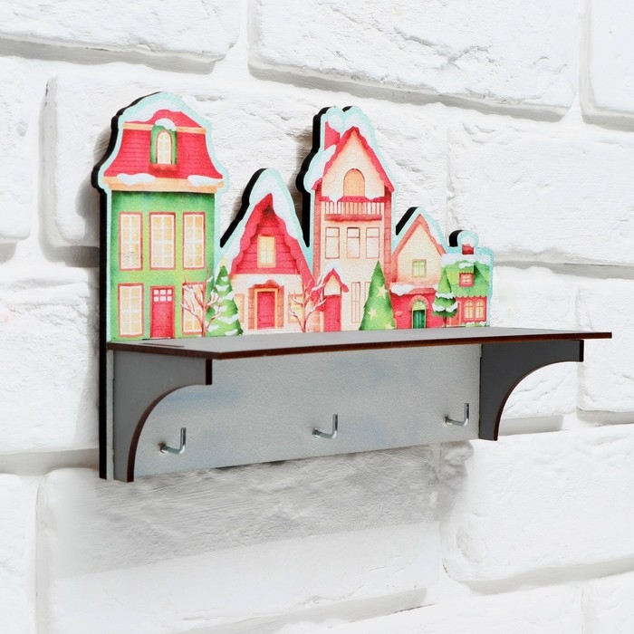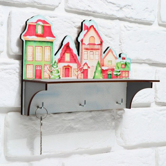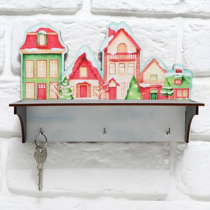 Ключница настенная новогодняя «Заснеженные дома», на Новый год