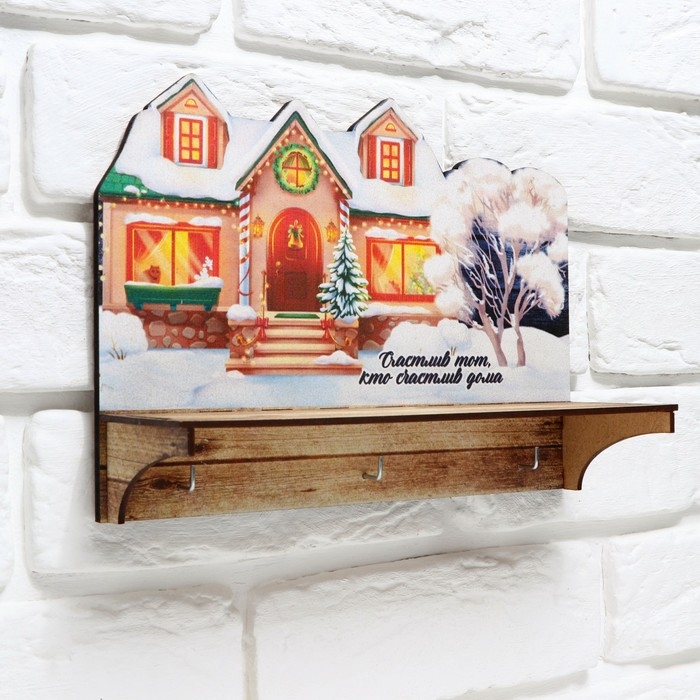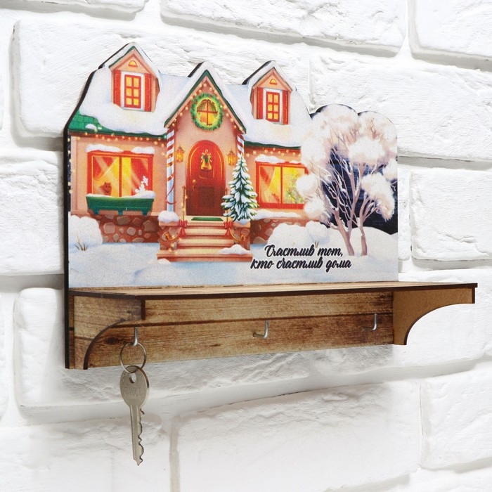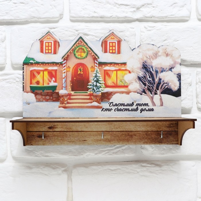 Ключница настенная новогодняя «Счастливый тот кто счастлив дома», на Новый год