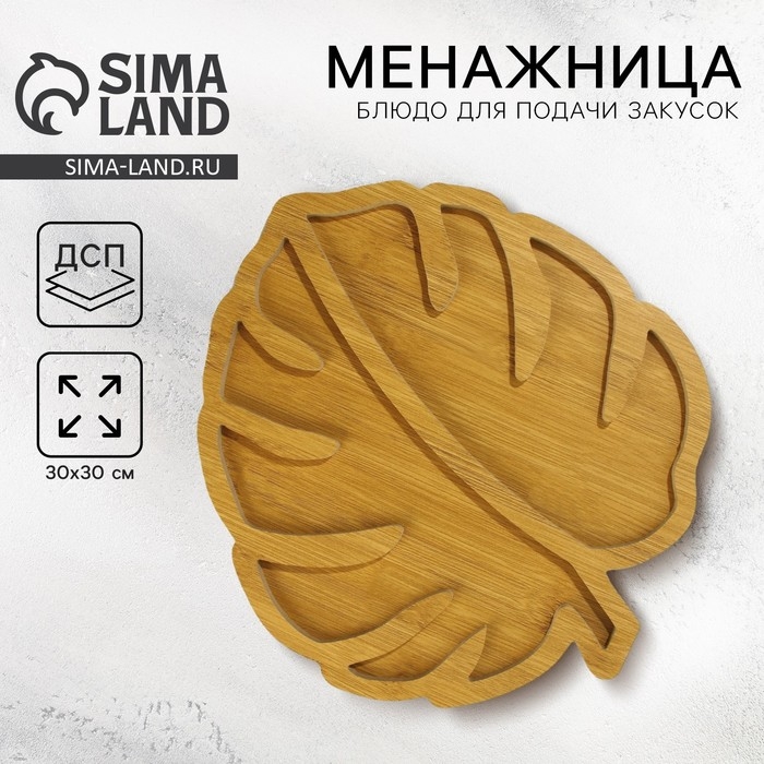 Менажница деревянная «Монстера », 30 х 30см
