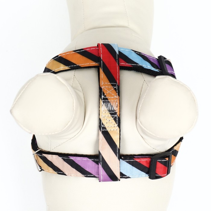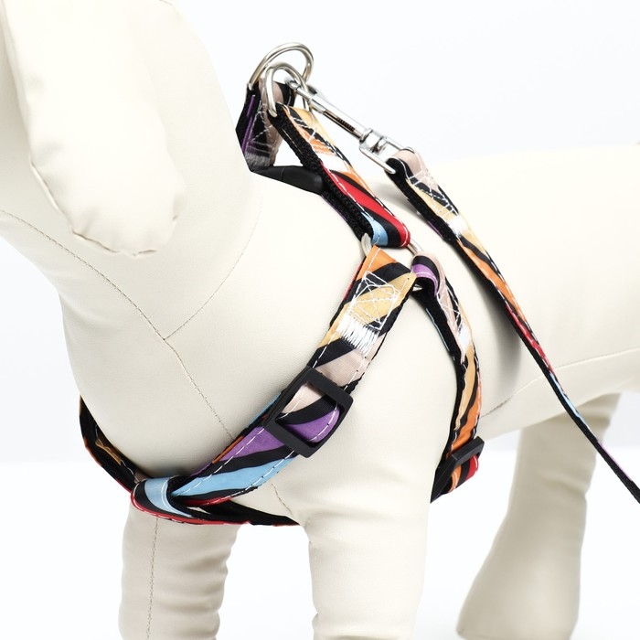 Незаменимый, яркий аксессуар для совместных прогулок подарит комфорт вам и вашему питомцу.Шлейка подходит для собак мелких и средних пород.Отличный выбор для вашего четвероногого друга, который удобен и практичен в использовании.В шлейке встроенная качественная металлическая фурнитура, которая прослужит вам длительный период времени.Шлейка имеет легкий и быстрый способ застежки, который располагается на спинке, рядом с колечком для поводка. Застёжка позволит вам быстро снимать и надевать шлейку на вашего питомца. А также вы без труда сможете настроить шлеечку под фигуру вашего любимца.Разноцветный дизайн амуниции будет радовать глаз и поднимать вам настроение.