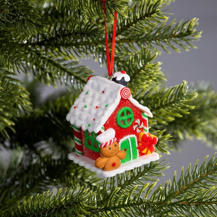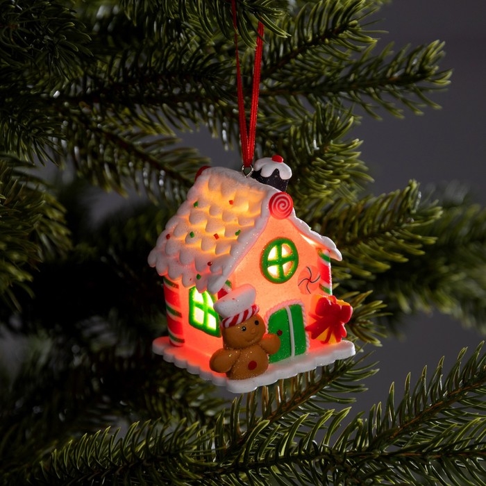 Ёлочная игрушка «Дом из конфет» 6 × 7.6 × 5.5 см, от батареек, свечение тёплое белое