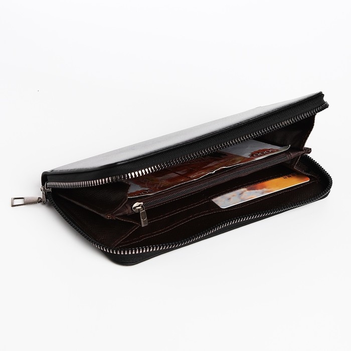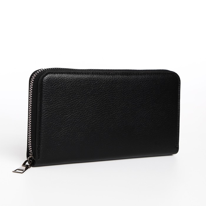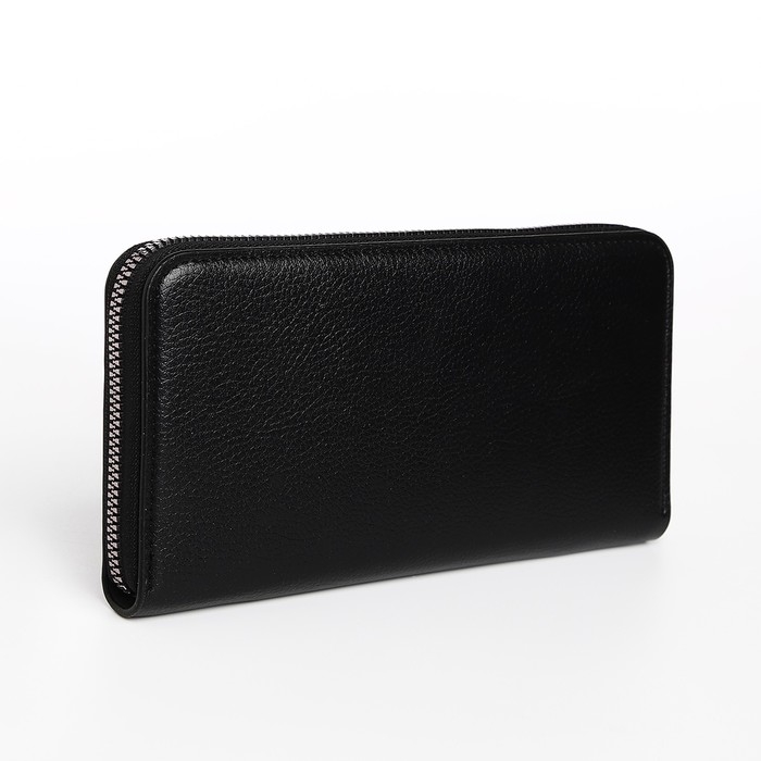 Портмоне мужское на молнии, отдел для купюр, для карт, для монет, цвет чёрный