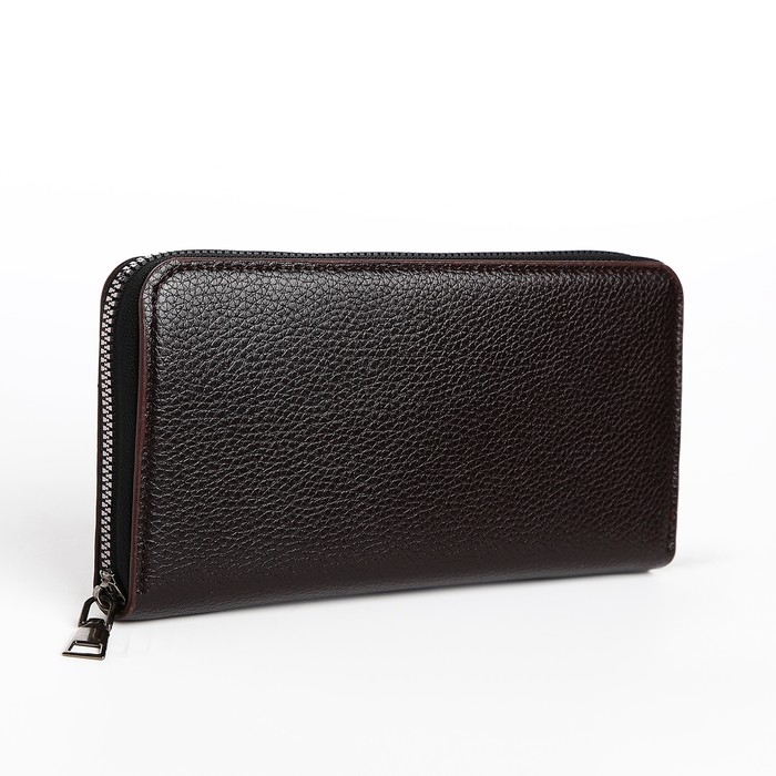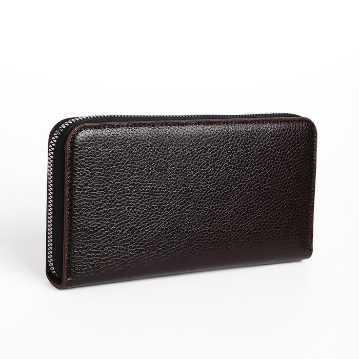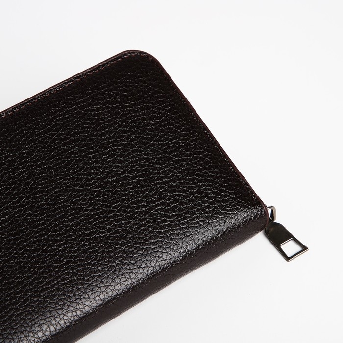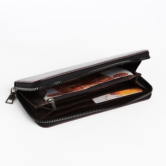 Портмоне мужское на молнии, отдел для купюр, для карт, для монет, цвет тёмно-коричневый