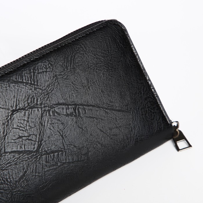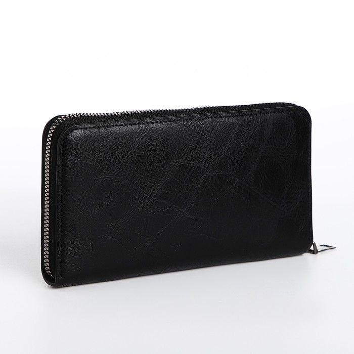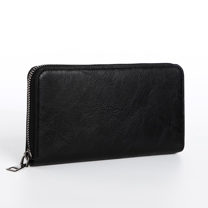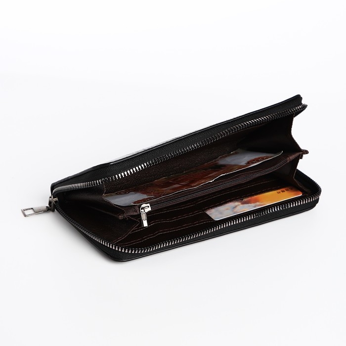 Портмоне мужское на молнии, отдел для купюр, для карт, для монет, цвет чёрный