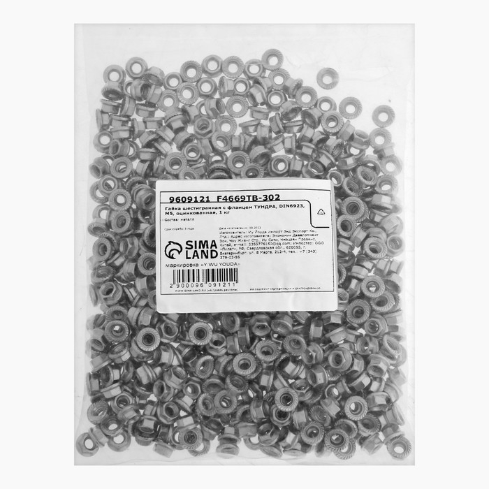 Гайка ТУНДРА, с фланцем, DIN 6923, класс прочности 8, оцинкованная, М5, 1 кг
