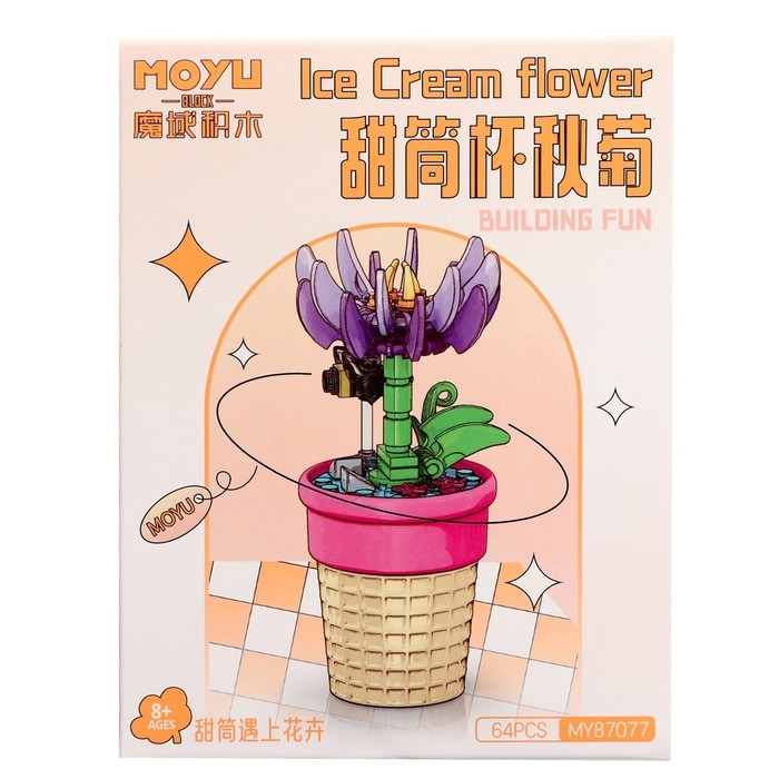 Конструктор Цветы «Гвоздика в горшочке с пчёлкой», 64 детали