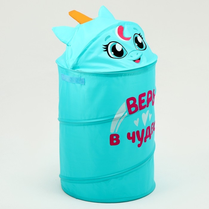 Корзина для хранения игрушек «Единорог» с ручками и крышкой, 55 х 33 х 33 см, голубая