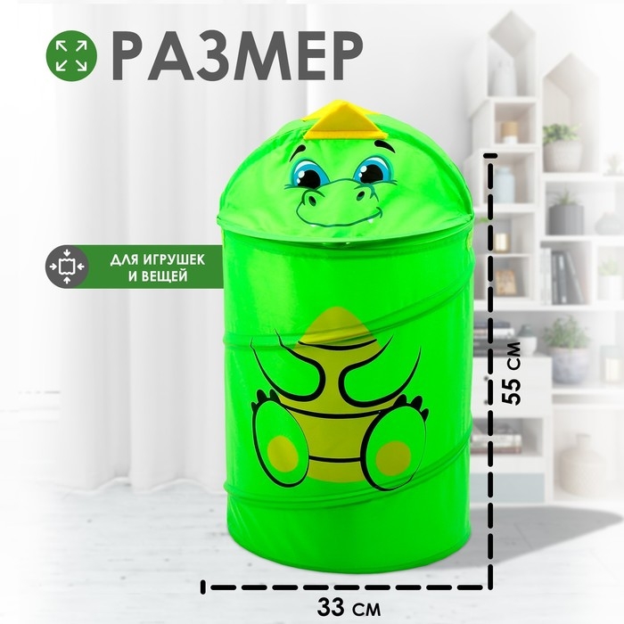 Корзина для хранения игрушек «Динозаврик» с ручками и крышкой, 55 х 33 х 33 см, зелёная