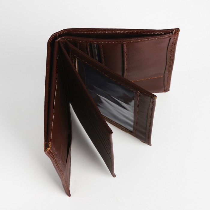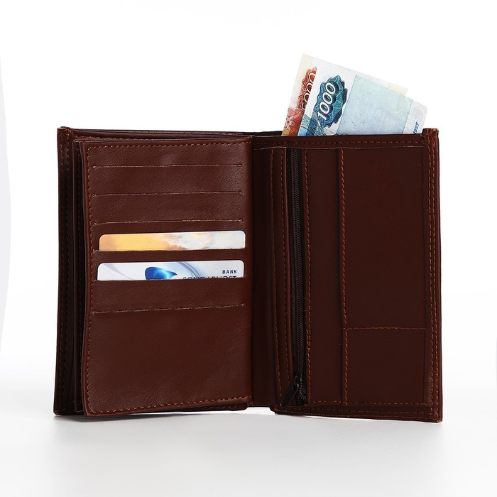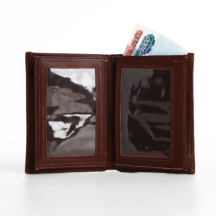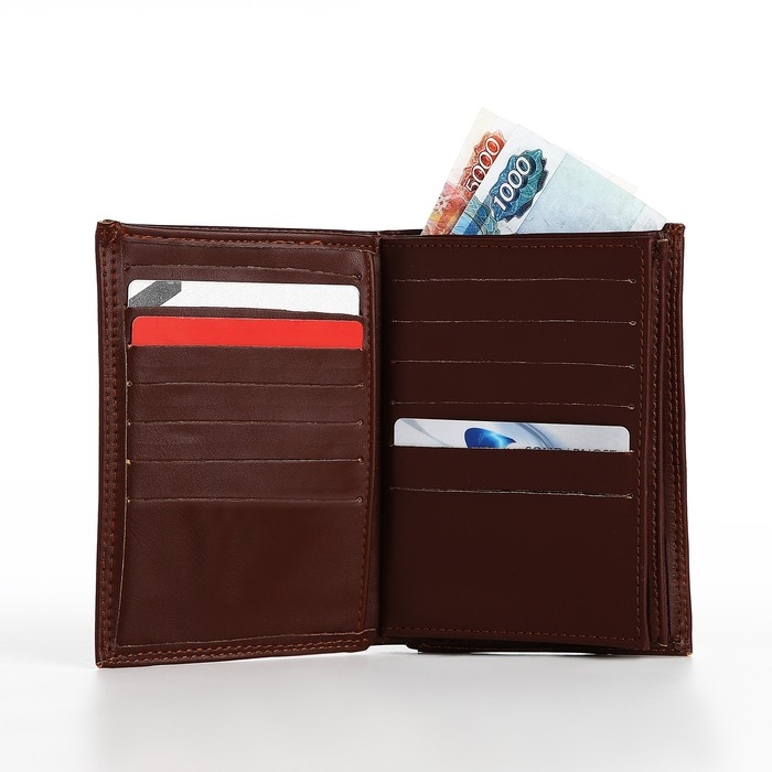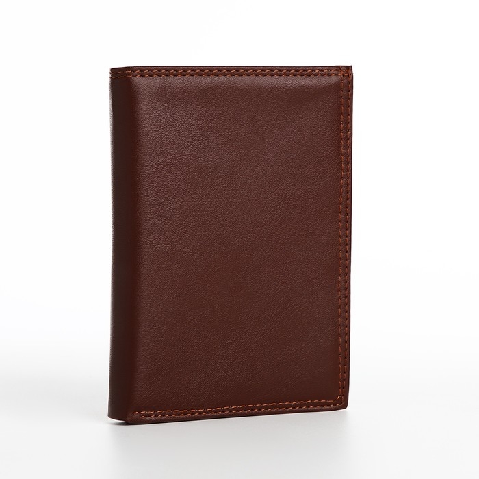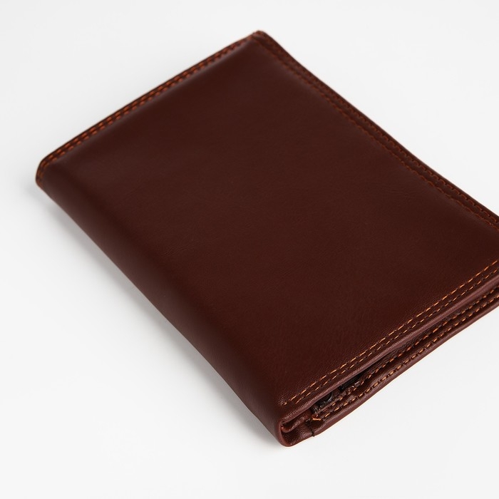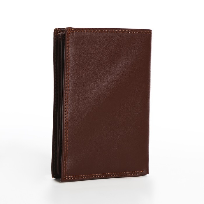 Портмоне мужское без застёжки, 3 в 1, отдел автодокументов, паспорта, карт, купюр, цвет коричневый