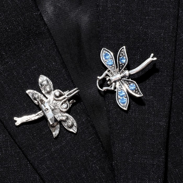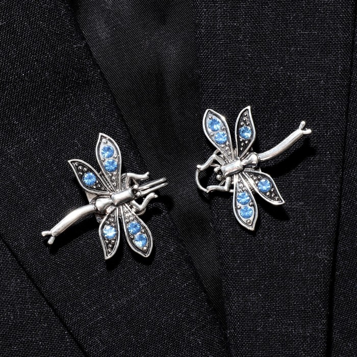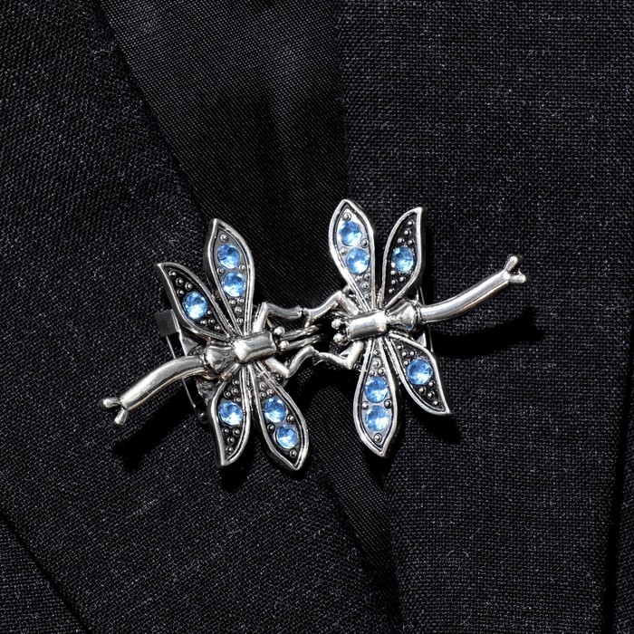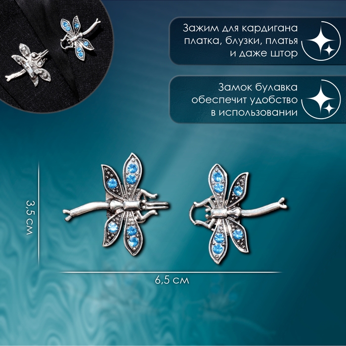 Зажим для кардигана «Стрекоза», цвет синий в чернёном серебре