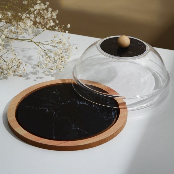 Блюдо с крышкой «Черный мрамор», 15 см
