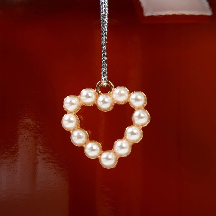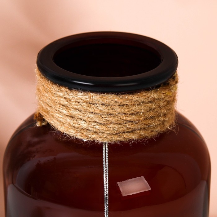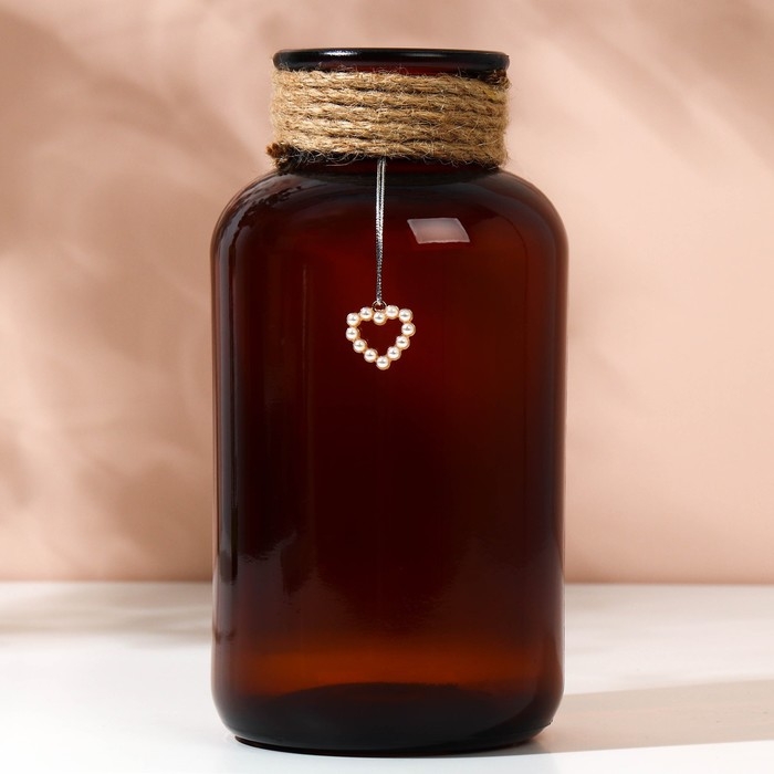Ваза украшена натуральной веревкой, а также подвеской в виде сердца, выполненного из жемчужин.