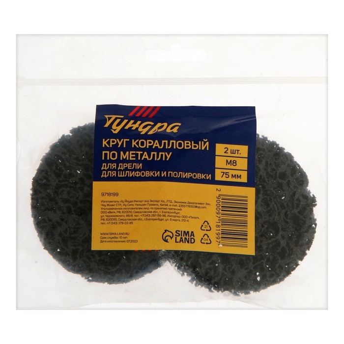 Круг коралловый по металлу ТУНДРА, для шлифовки и полировки, для дрели, М8, 75 мм, 2 шт.