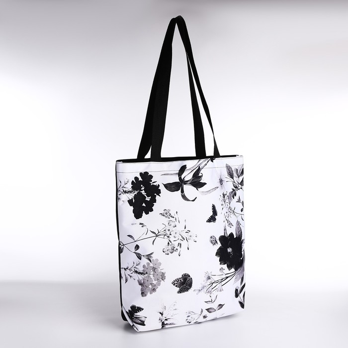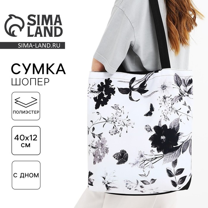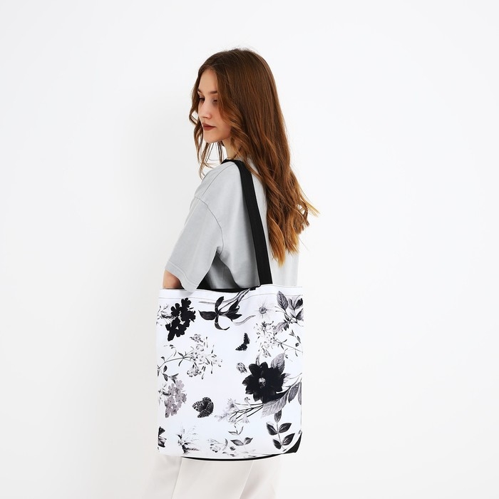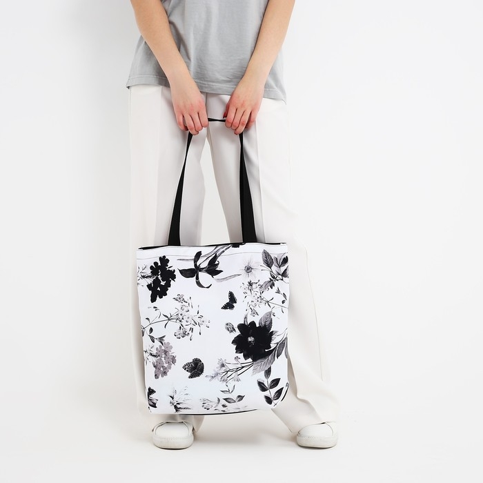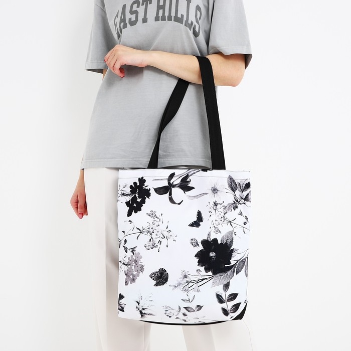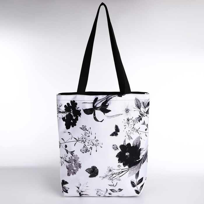 Шопер "Цветы", 40х12х38 см, цвет чёрный