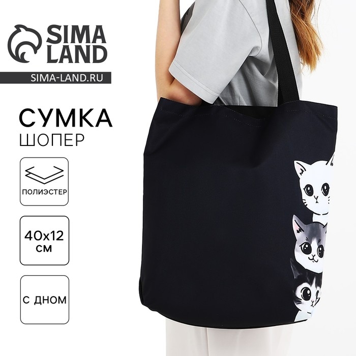Шопер Котики, 40х12х38, цвет чёрный