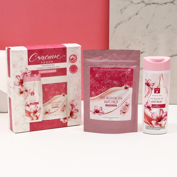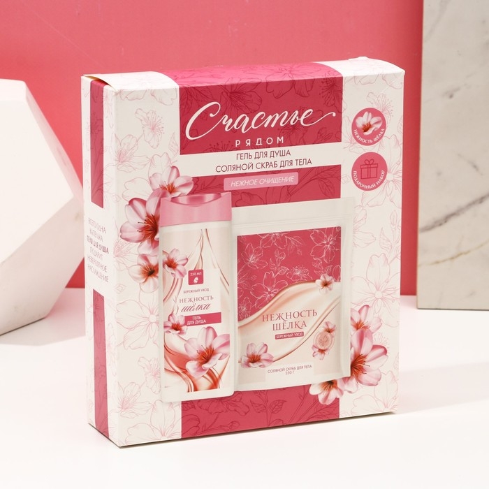 Подарочный набор косметики «Счастье рядом», гель для душа 250 мл и скраб для тела соляной 250 г, ЧИСТОЕ СЧАСТЬЕ