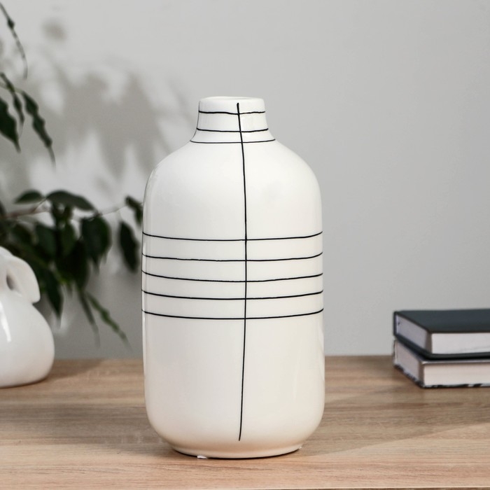 Ваза керамика настольная "Пикассо" (ручная роспись) полоса, h-25 см d-4 см, чёрно-белый