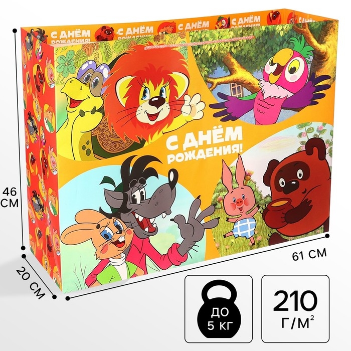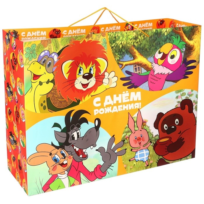 Пакет подарочный "С Днем рождения!" 61х46х20 см, упаковка, Союзмультфильм