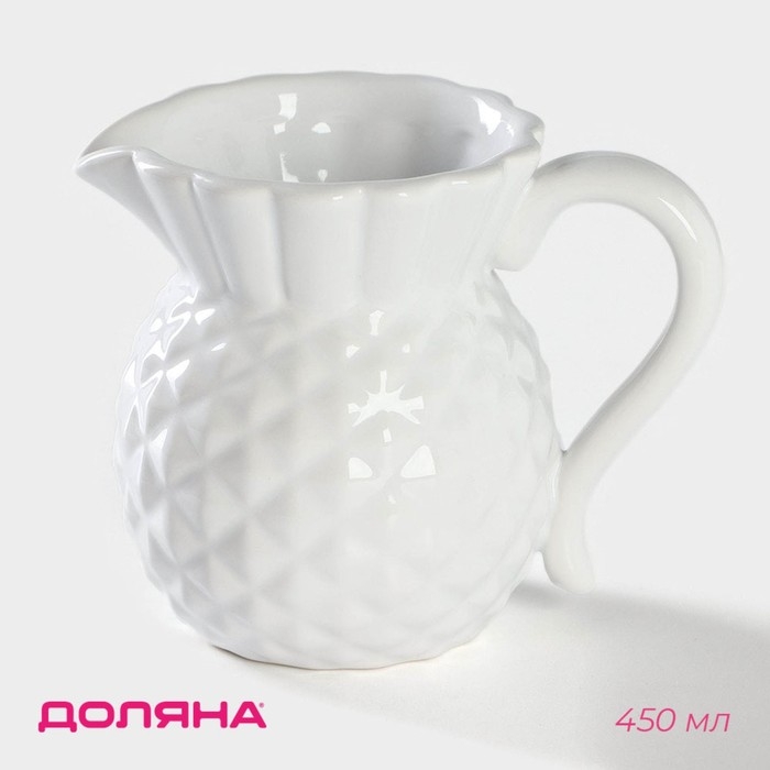 Кувшин для воды керамический Доляна «Ананас», 450 мл, 9,5×11,7 см, цвет белый