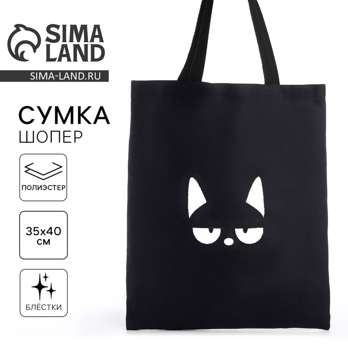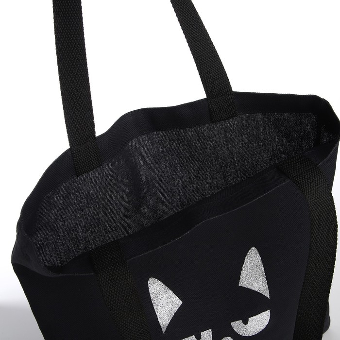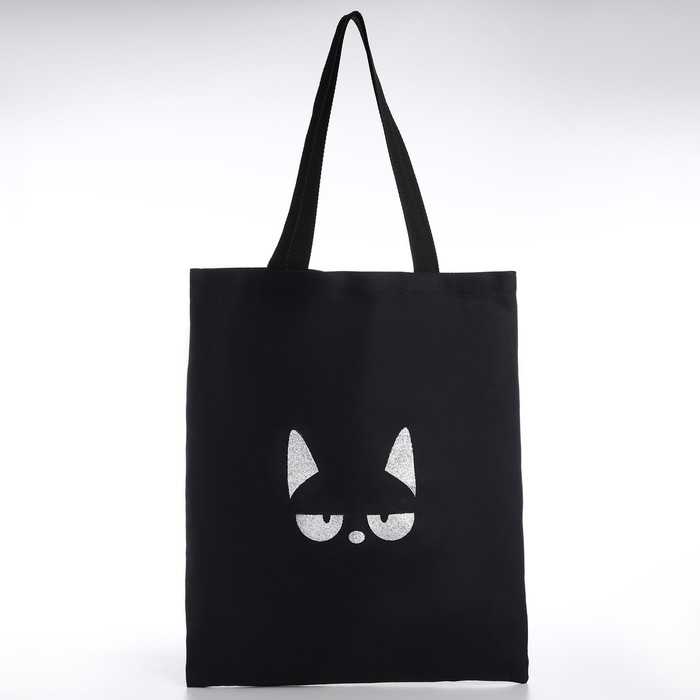 Шопер "Котик", 35х0,5х40, принт с блёстками, без подклада, чёрный