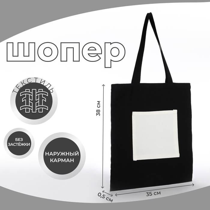Шопер без застёжки, из текстиля, цвет чёрный/белый