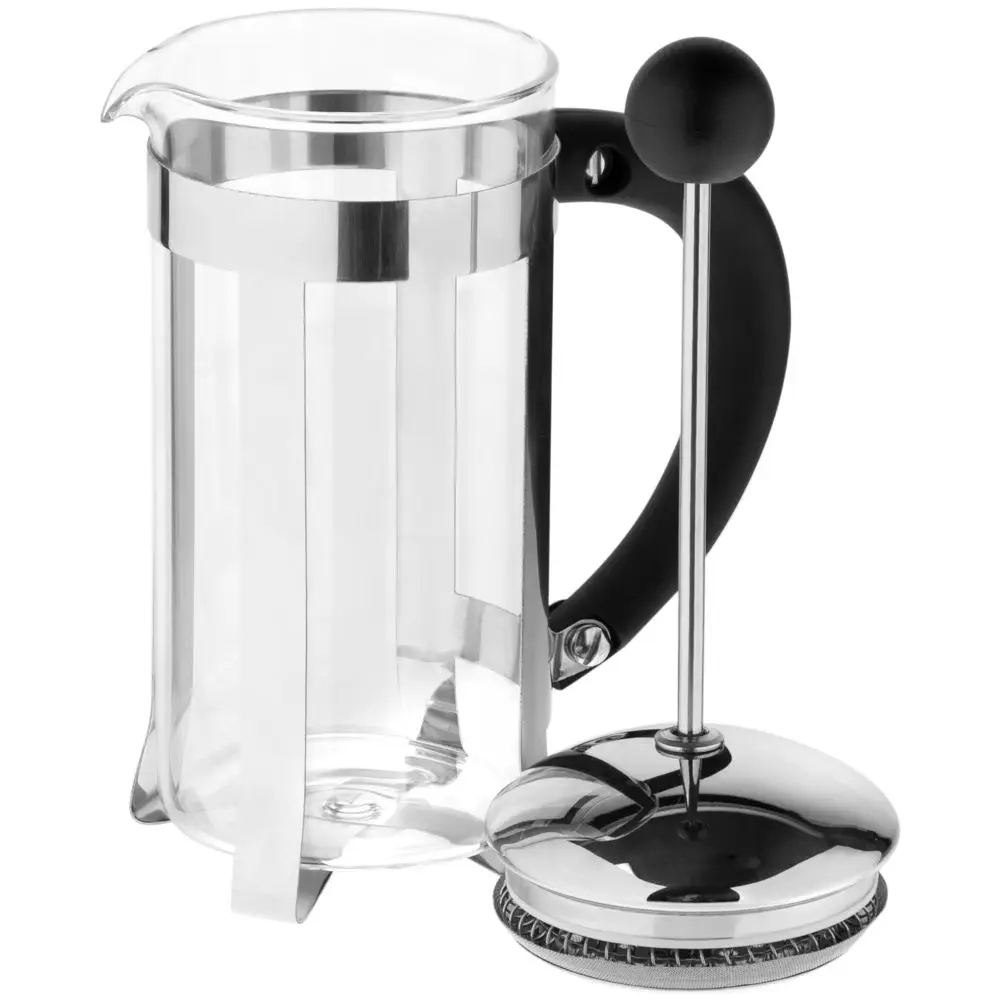 Элегантная оправа из нержавеющей стали защитит колбу от повреждений, а пластиковая ручка не даст обжечься о горячую поверхность.