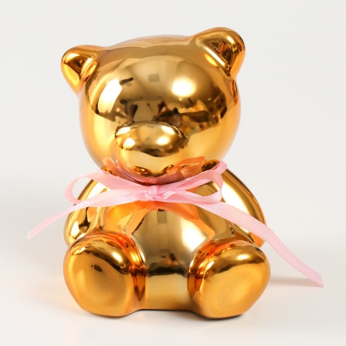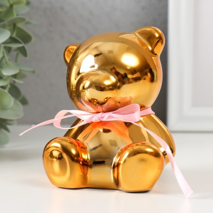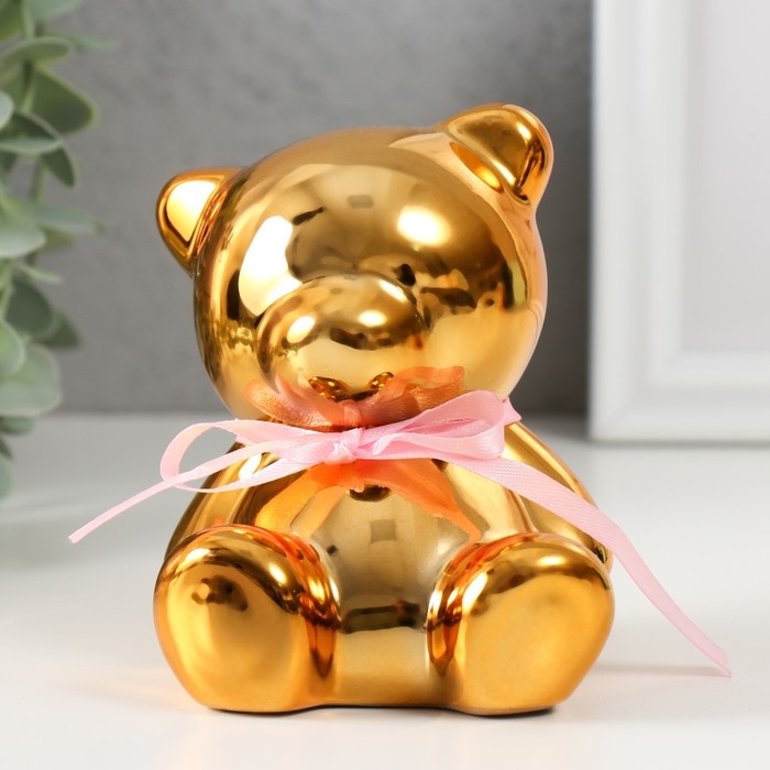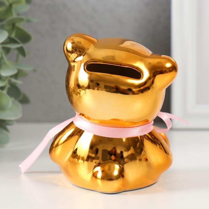 Копилка керамика "Мишутка с бантиком" золото 9х8х9,8 см