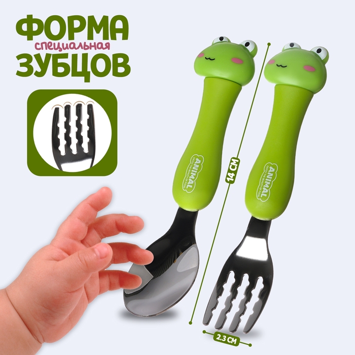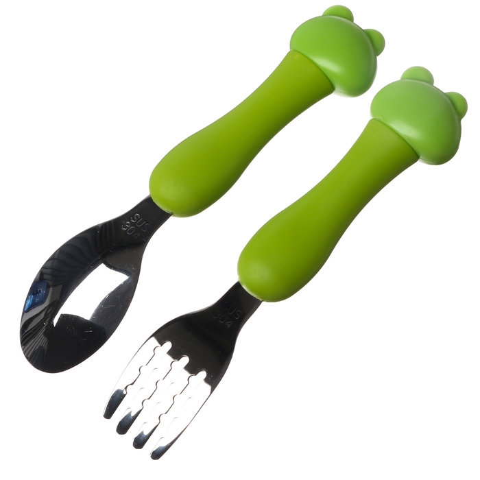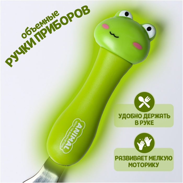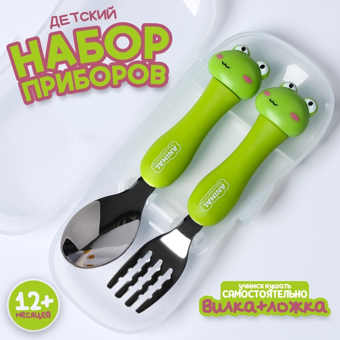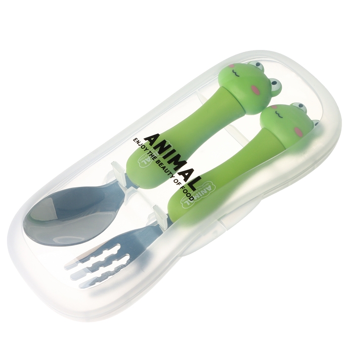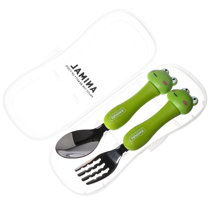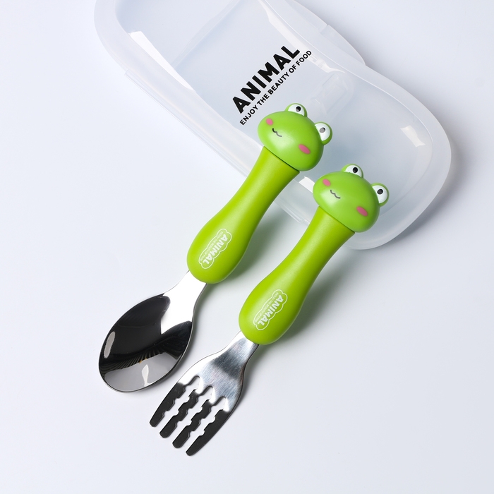 Набор детских столовых приборов в футляре «Лягушата», вилка, ложка