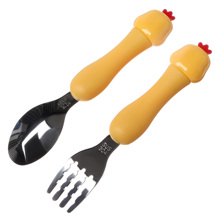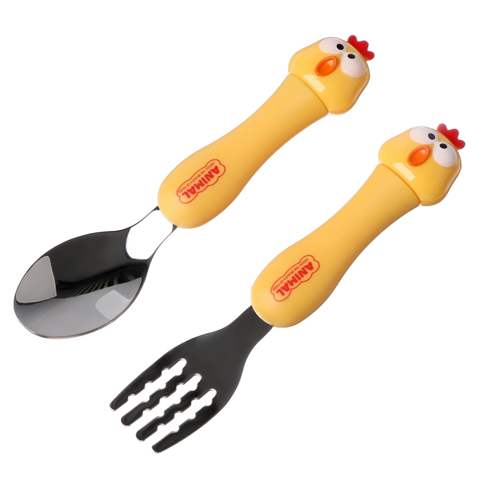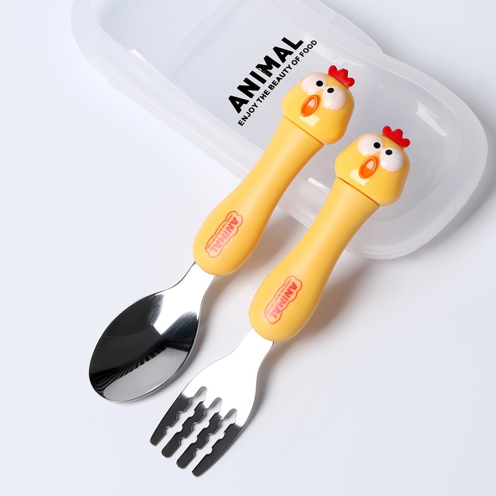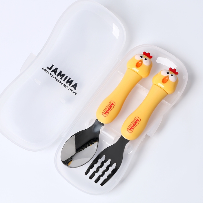 Набор детских столовых приборов в футляре «Курочки», вилка, ложка