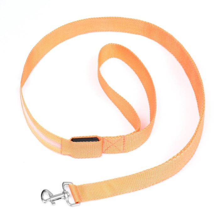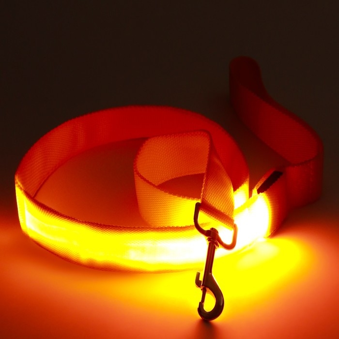 Поводок с подсветкой 3 режима свечения, 120 х 2,5 см, оранжевый