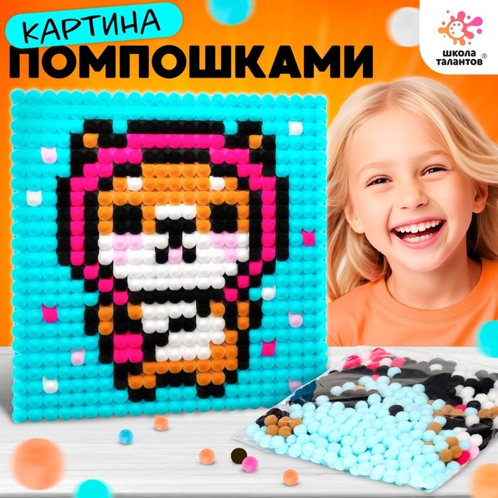 Набор для творчества «Корги», картина помпошками, на холсте, 3+