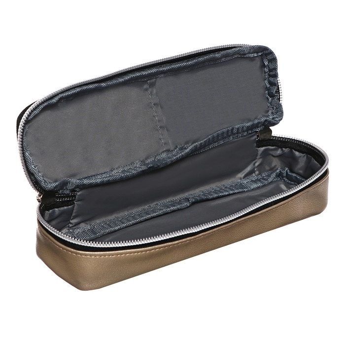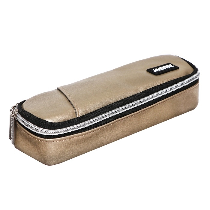 Пенал "deVENTE. Private" 22x6x4 см, овальный для 40 предметов, матовая искусственная кожа до -40C, внешний карман, внутренний карман, с каучуковой аппликацией, золотистый