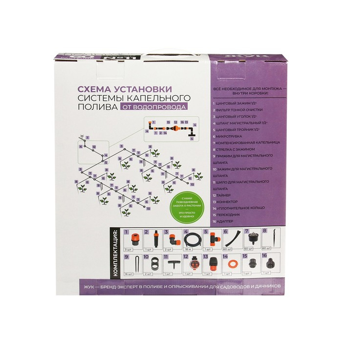 Набор для капельного полива от водопровода, на 60 растений, с таймером, «Жук»