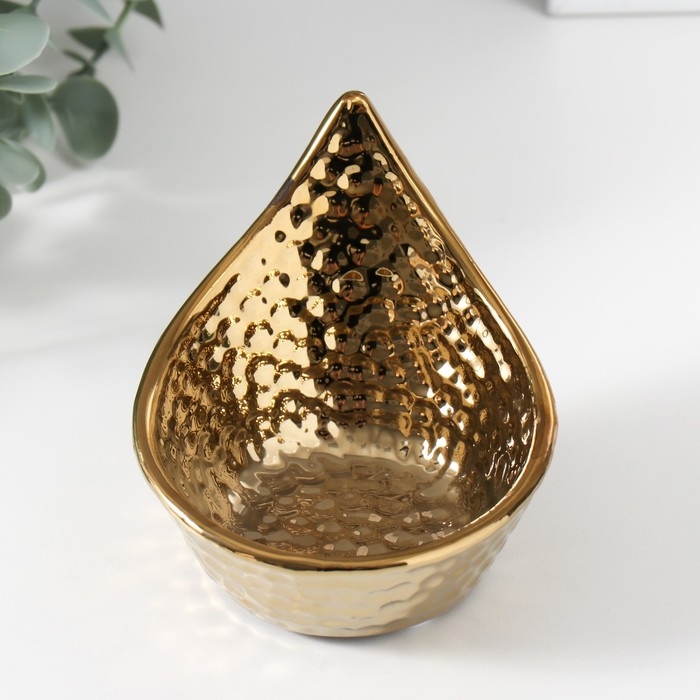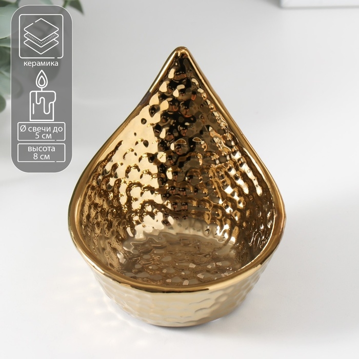Подсвечник керамика на 1 свечу "Капля" d=5 см золото 11х9х8 см