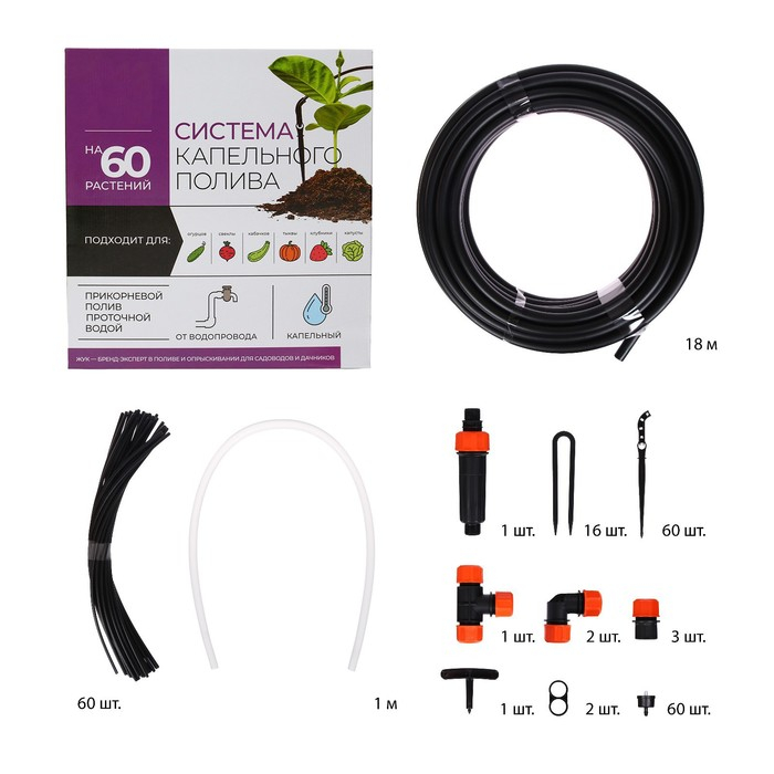Набор капельного полива от водопровода, на 60 растений, «Жук»