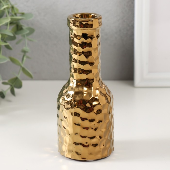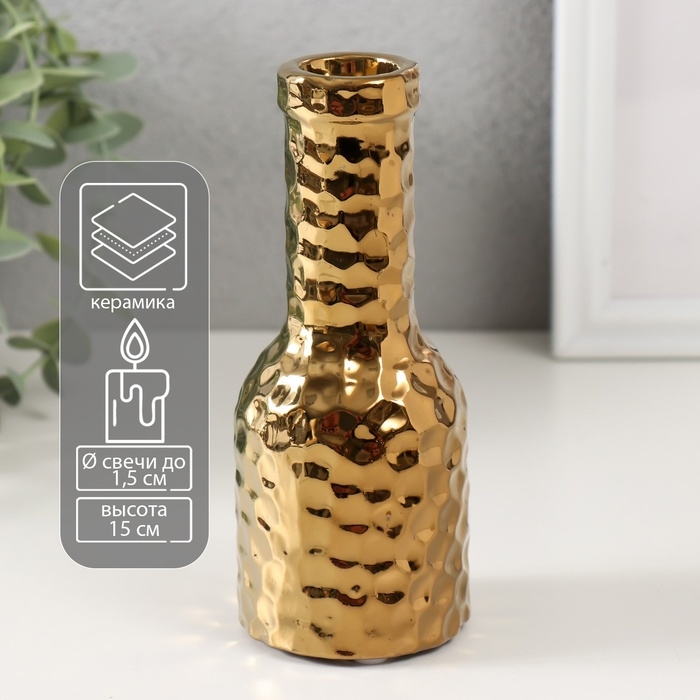 Подсвечник керамика на 1 свечу "Бутыль" d=1,5 см золото 6х6х15 см