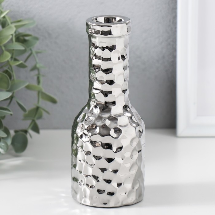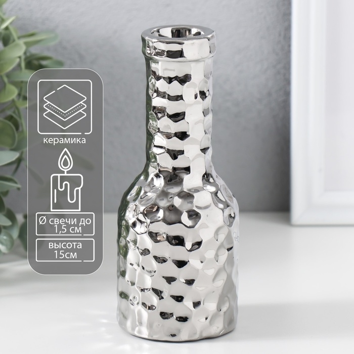 Подсвечник керамика на 1 свечу "Бутыль" d=1,5 см серебро 6х6х15 см
