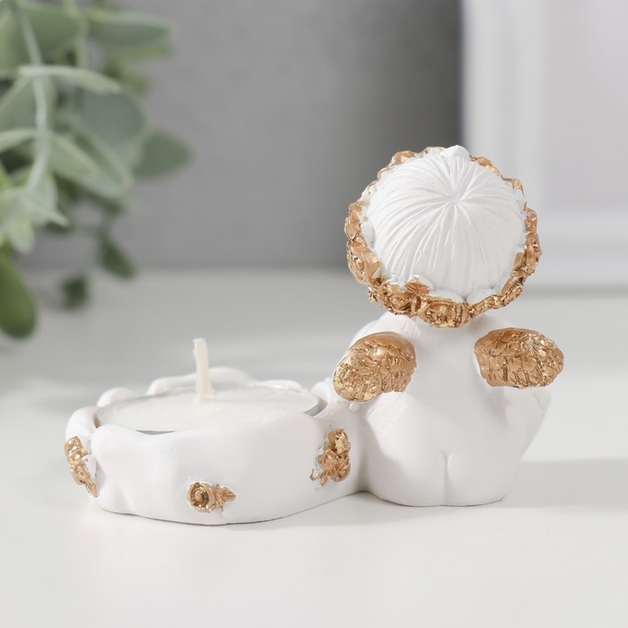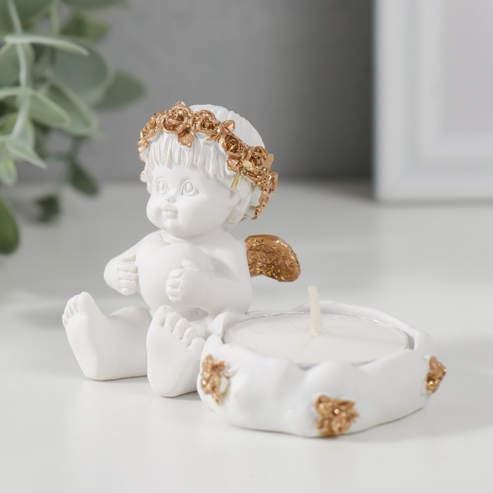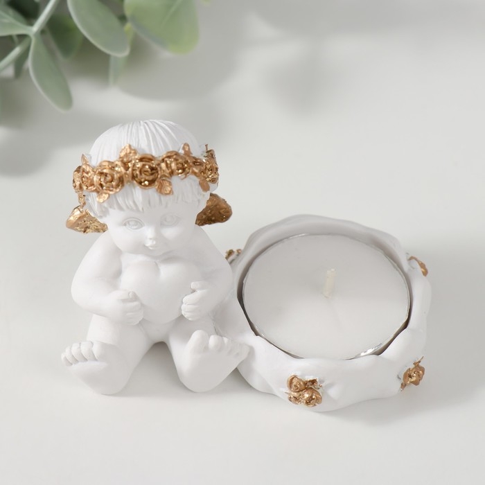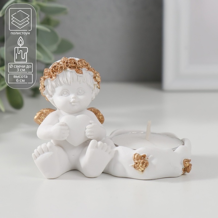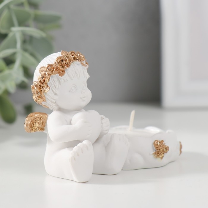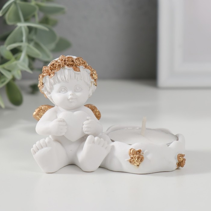 Подсвечник полистоун "Ангелочек с сердцем, в золотом венке" 6х5,3х8 см