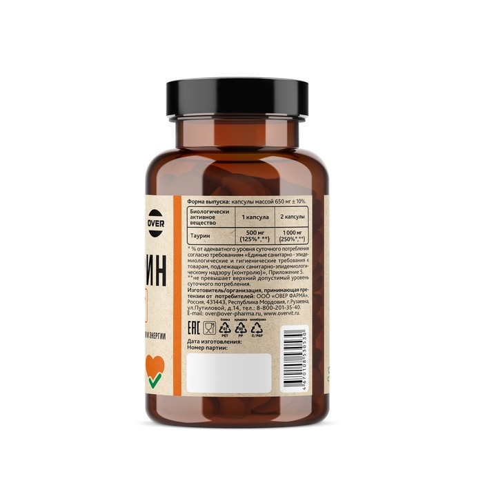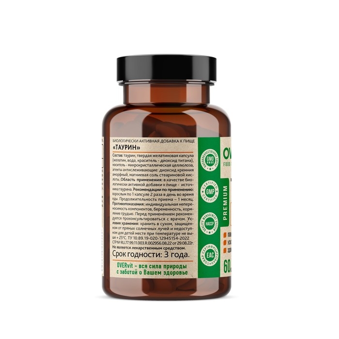 Таурин OVERvit, 90 капсул
