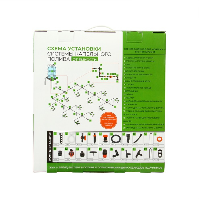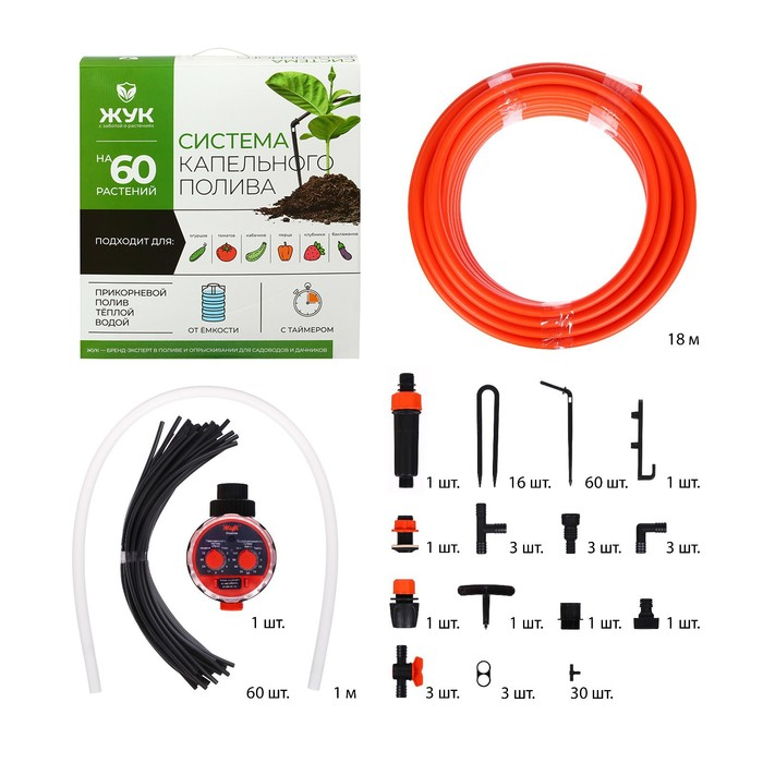 Набор капельного полива от ёмкости, на 60 растений, с таймером, «Жук»