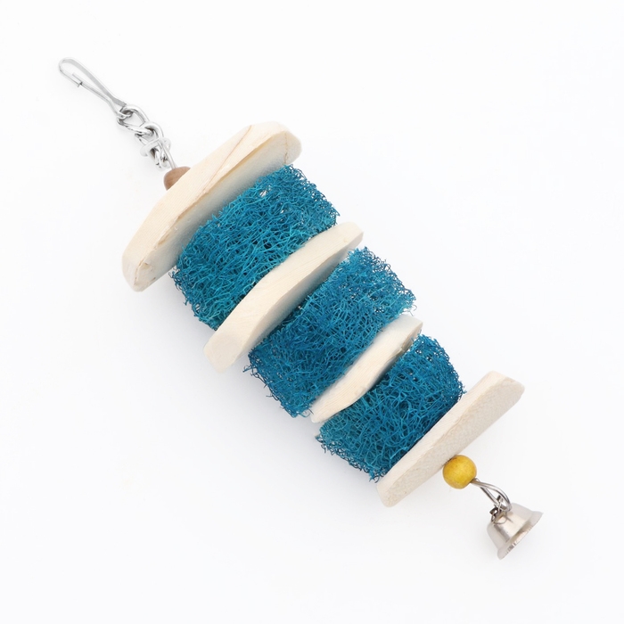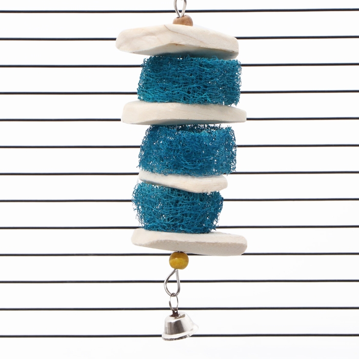 Сочетание разных текстур способствует естественному стачиванию зубов и когтей, что особенно важно для грызунов и птиц. Звук колокольчика добавляет интерактивности, привлекая внимание и стимулируя активность питомца, что помогает предотвратить скуку и улучшить настроение вашего любимца.