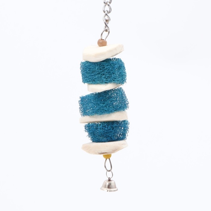 Игрушка с панцирем каракатицы, люфой и колокольчиком, 25 х 5 см, голубая