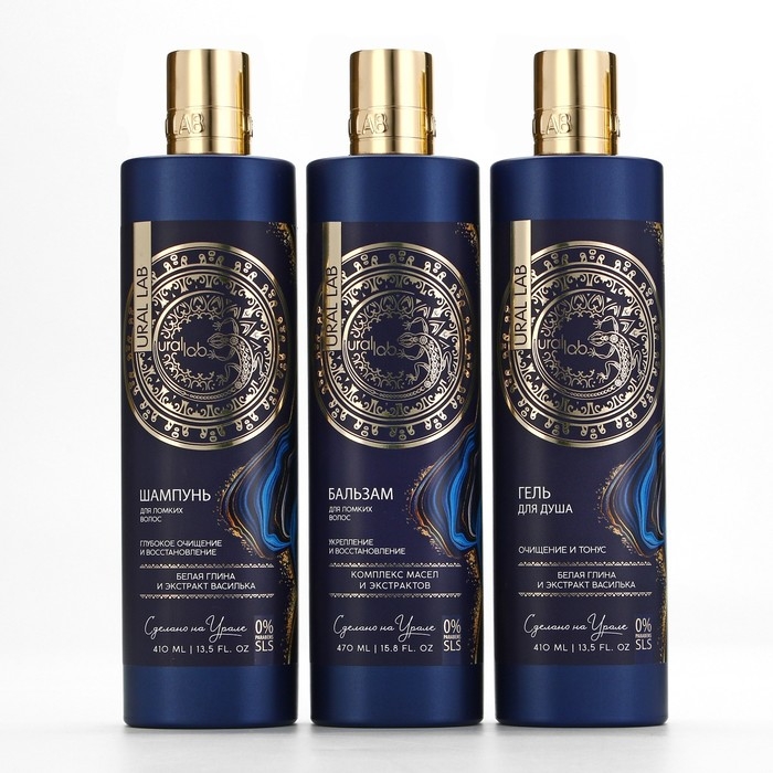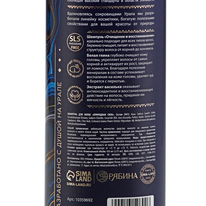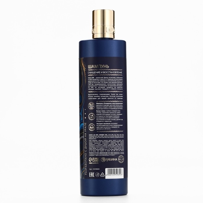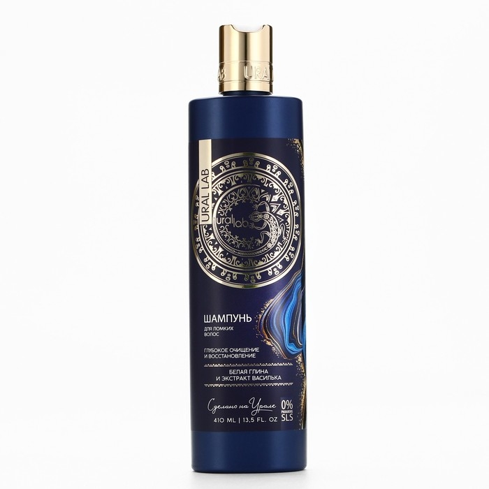 Шампунь для волос с белой глиной и экстрактом василька, глубокое очищение и восстановление, 410 мл, URAL LAB