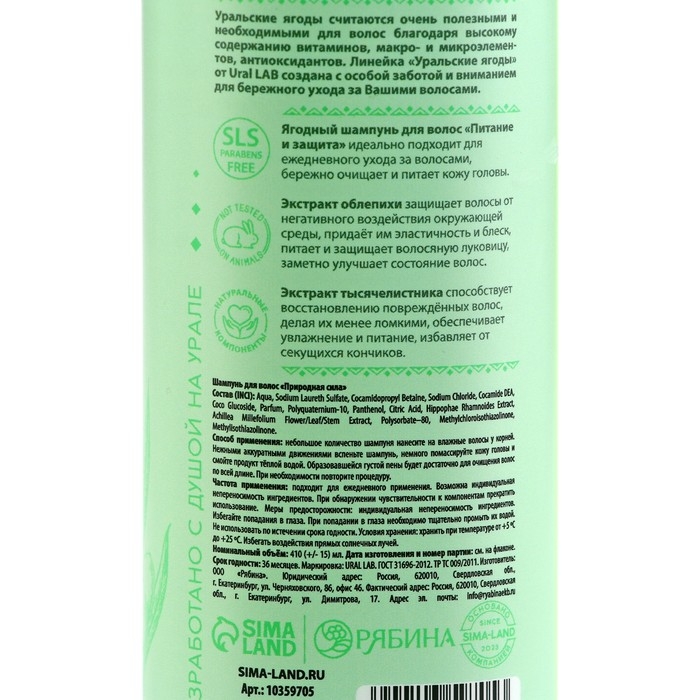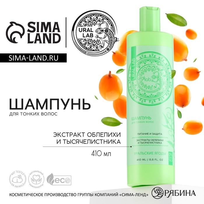 Шампунь для волос с экстрактом облепихи и тысячелистника, питание и защита, 410 мл, URAL LAB