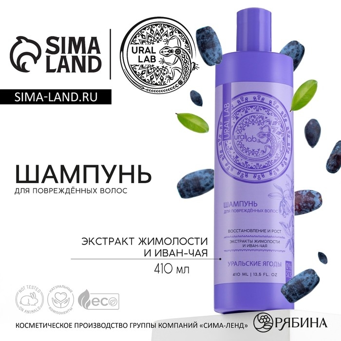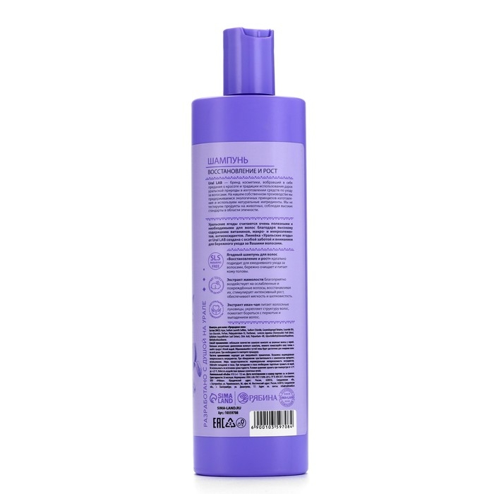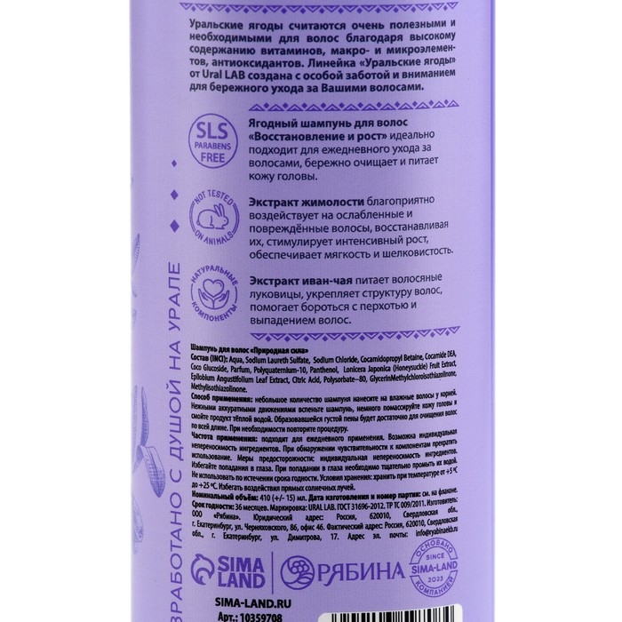 Шампунь для волос, с экстрактом жимолости и иван-чая, восстановление и рост, 410 мл, URAL LAB