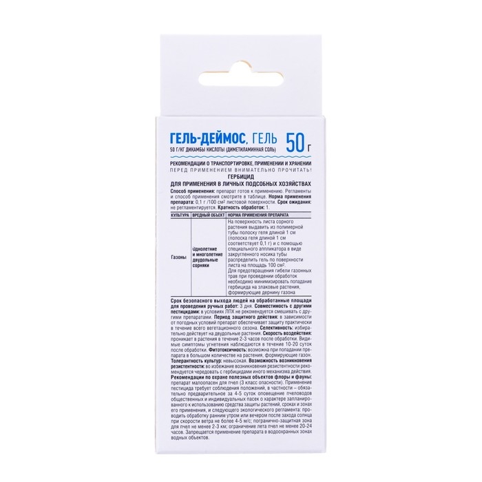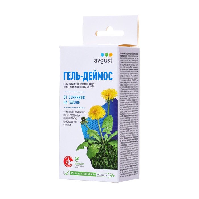 Эффективный препарат от злостных широколистных сорняков для очистки целинных участков, дорожек, площадей вдоль заборов. Для очистки сильно заросших или целинных участков от сорной растительности существуют различные способы. Но большинство из них очень трудозатратны и малоэффективны.Одни специалисты рекомендуют несколько раз перепахивать площадь для снижения концентрации лопухов и конского щавеля, другие − советуют накрыть почву плотной светонепроницаемой пленкой на весь сезон. Такие мероприятия требуют привлечения техники и финансовых затрат, а в итоге лишь временно приостанавливают рост бурьяна.В сельском хозяйстве для возделывания целины давно используется гербицид Деймос против широколистной сорной растительности. Теперь компания "Август" выпустила этот препарат и для применения в личных подсобных хозяйствах.Деймос от злостных сорняков разводится водой по инструкции и заливается в опрыскиватель. Обработку сорняков проводят в ранние фазы их роста, лучше всего весной. Обладая системным действием, препарат проникает в растение через наземную часть и корневую систему, достигает точек роста и подавляет их, уничтожая даже сорняки, устойчивые к гербицидам из других химических классов (глифосатам). Видимые симптомы действия препарата проявляются через 7-15 дней, полная гибель сорняков наступает через 15-30 дней в зависимости от температурных условий и фазы развития сорняков в период обработки.К Деймосу чувствительны более 40 видов двудольных сорняков, таких как амброзия, бодяк полевой, одуванчик, клевер, горец, дымянка аптечная, марь, звездчатка (мокрица), осот, подмаренник цепкий, ромашка, лютик, пикульник, щирица, щавель, борщевик Сосновского, ярутка, полынь, горчица, чемерица, яснотка и другие. У препарата хорошие показатели безопасности: он не токсичен для пчел и малотоксичен для теплокровных, не имеет воздействия на последующие культуры и полностью разлагается в почве за период вегетации.После применения препарата остается злаковая поросль, она может служить временным газоном и удерживать почву от размывания дождями. Это удобно если на участке планируется строительство. Если же необходима полная очистка территории, то в раствор препарата Деймос нужно добавить препарат Миура. Он активен против злаковых сорняков и совместное применение двух гербицидов обеспечит сплошную очистку участка. Эффективно уничтожает более 40 видов сорняков, в т.ч. амброзию, осоты, клевер, борщевик, марь и другие.Вызывает гибель сорняков, устойчивых к гербицидам из других химических классов.Полностью разлагается в почве за период вегетации.Имеет высокую скорость проникновения. Действующее вещество: 480 г/л дикамбы кислоты в виде диметиламинной соли.Препаративная форма: ВРК - водорастворимый концентрат.