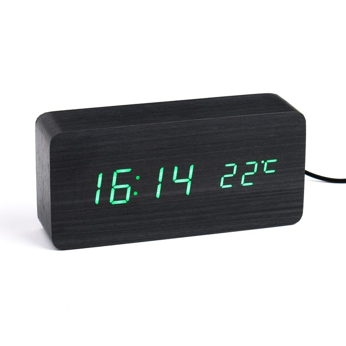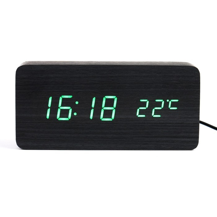 Часы - будильник электронные "Цифра-Т" настольные с термометром, деревянные, ААА, USB