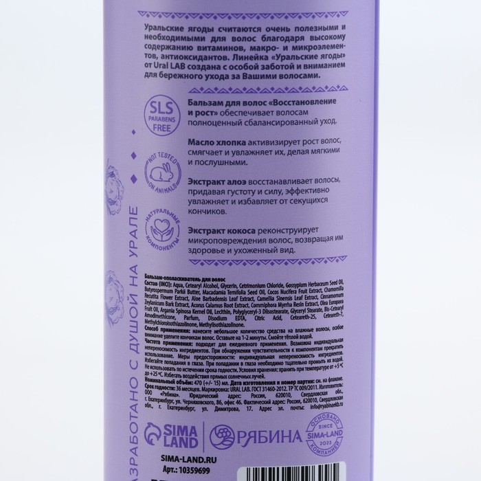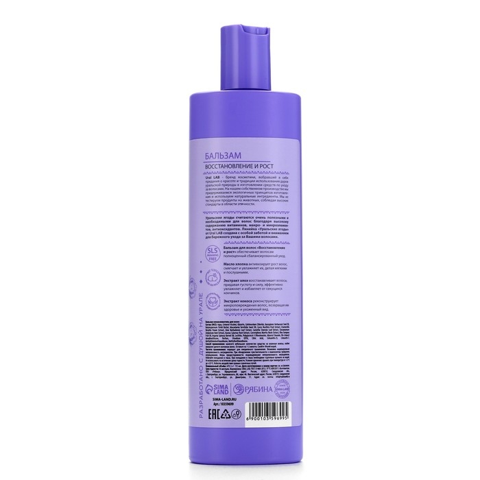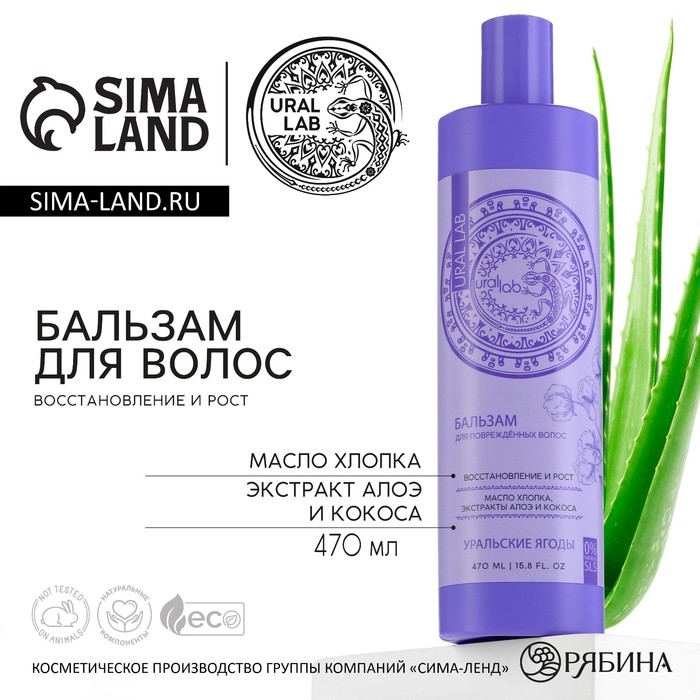 Бальзам для волос с маслом хлопка, экстрактом алоэ и кокоса, восстановление и рост, 470 мл, URAL LAB