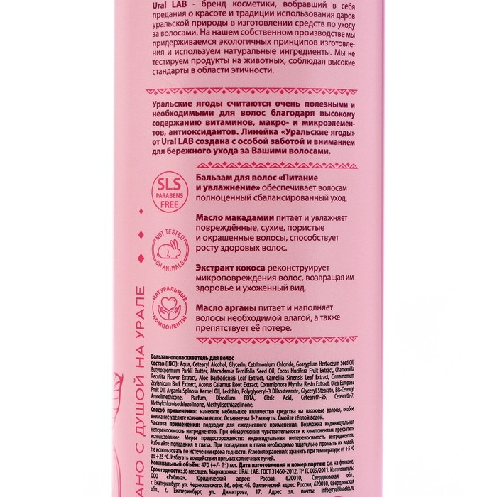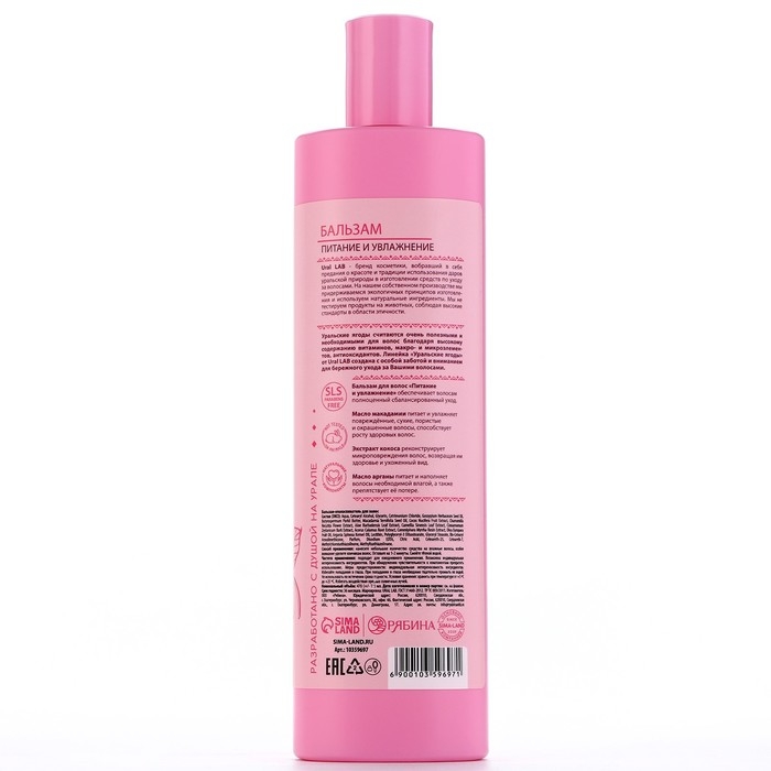 Бальзам для волос с экстрактом кокоса, маслом макадамии и арганы, питание и увлажнение, 470 мл, URAL LAB