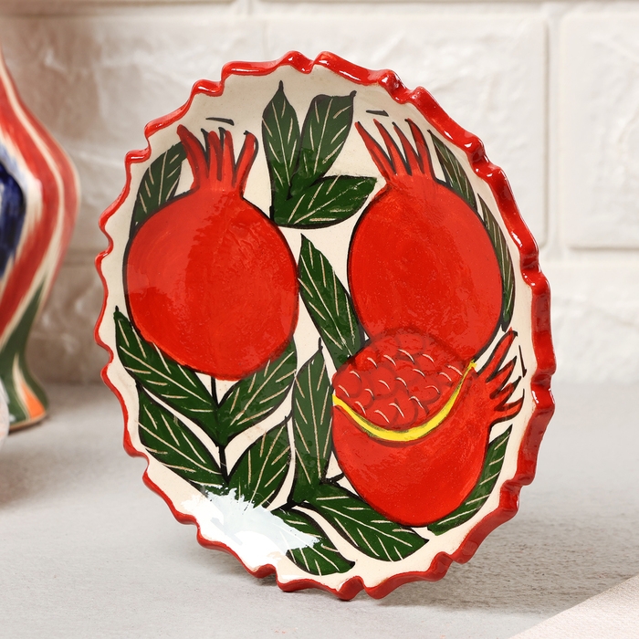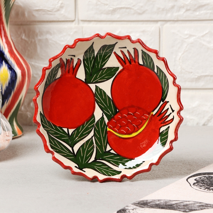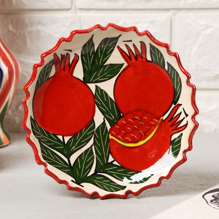 Тарелка Риштанская Керамика "Гранаты", 15 см, рифлёная